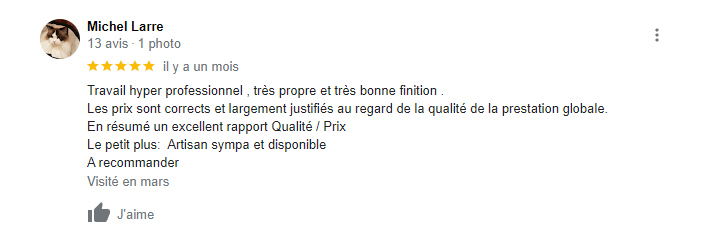 Nos derniers avis vérifiés sur Google :